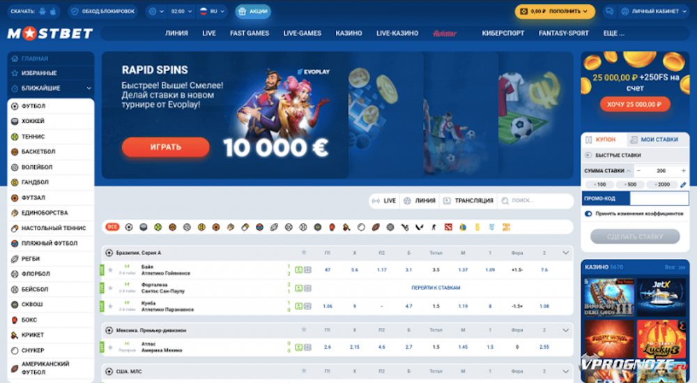 Главный ресурс букмекерской конторы Mostbet представляет собой современную онлайн-платформу с продуманным интерфейсом и высоким уровнем защиты данных. На портале предусмотрены разделы «Спорт» и «Live», где пользователи могут заключать пари на футбол, хоккей, теннис, баскетбол, киберспорт и другие дисциплины. В линии доступно более двадцати видов спорта, а роспись популярных событий насчитывает сотни вариантов прогнозов: от исхода матча до индивидуальной статистики игроков.